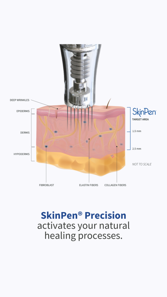 SkinPen’s microneedles penetrate the skin’s surface, triggering a natural immune response to disinfect, remove debris, increase blood flow, and activate the creation of new tissue.